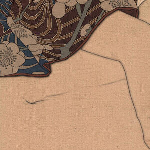 On her left hip downwards to her top thigh ending in the inner side of her thigh, she has a hebi (snake) wrapped around a sakura ( cherry blossom ) branch.The hebi / snake symbolizes rebirth, transformation, and the continual renewal of life.